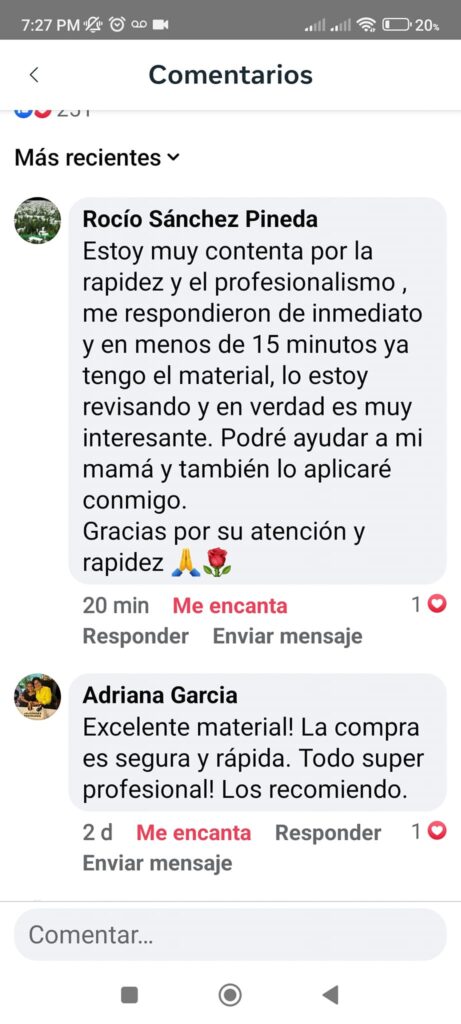 En los comentarios de la siguiente publicación de nuestra página podrás encontrar más y más comentarios de clientes que ya tienen el material y que están contentos con su compra.